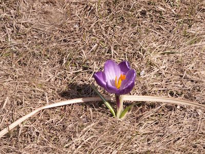 För att Ralf skulle slippa den ganska branta stigen tillbaka (det var då jag missade blåsipporna) så gick vi omvägen genom hästhagarna. Hmmm - det var en hel vårflod ivägen, som fick korsas med livet som insats. Nåja, iallafall de torra fötterna!